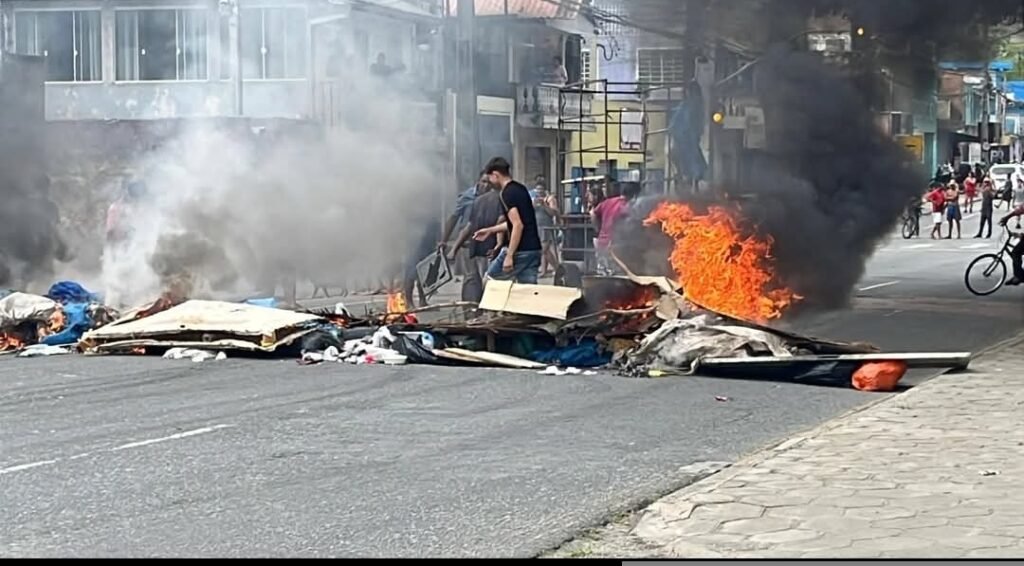 ENCAPUZADOS INTERDITAM AVENIDA E TENTAM INCENDIAR ÔNIBUS APÓS CONFRONTO NA VILA TORRES.