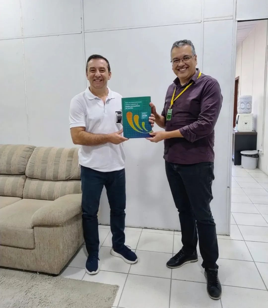 O prefeito de Itaperuçu, Edilson Macadame, recebeu oficialmente o Plano de Desenvolvimento Urbano Integrado (PDUI) da Região Metropolitana de Curitiba. A entrega foi feita pelo Secretário de Planejamento e Gestão, José Ari Nunes, formalizando o documento que orientará o crescimento sustentável e a gestão da região. O momento destacou a importância do ex-secretário de Planejamento Araslei Cumim (em memória), que teve papel fundamental na elaboração do plano, participando ativamente de reuniões e oficinas técnicas junto à AMEP (Agência de Assuntos Metropolitanos do Paraná).
