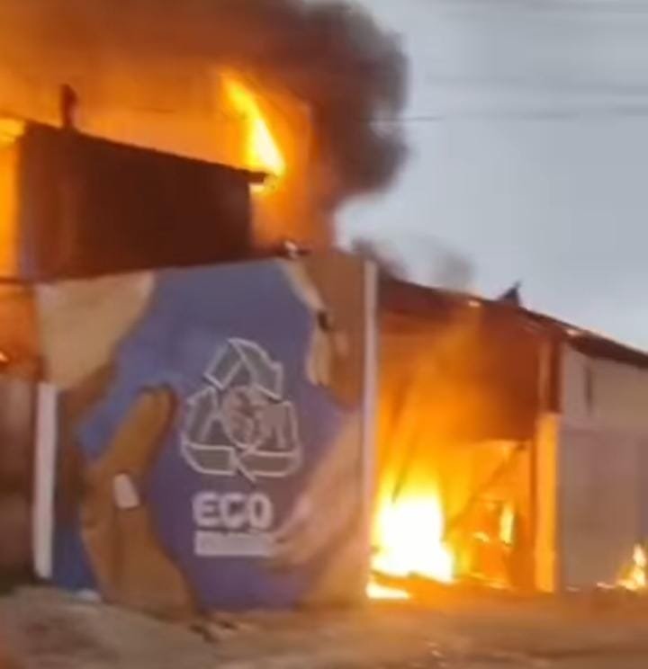 INCÊNDIO DESTRÓI BARRACÃO DE RECICLAGEM E ATINGE CASAS NO PAROLIM, EM CURITIBA