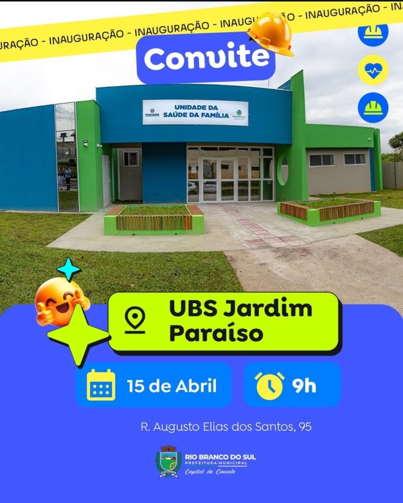 Nova UBS do Jardim Paraíso será inaugurada na próxima terça-feira (15) Na próxima terça-feira, 15 de abril, a população de Rio Branco do Sul está convidada para celebrar uma grande conquista para a saúde do município: a inauguração da nova Unidade Básica de Saúde (UBS) do Jardim Paraíso. O evento está marcado para as 9h […]