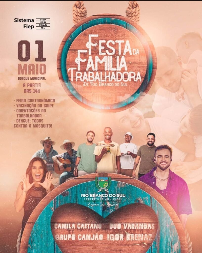 Festa da Família Trabalhadora acontece dia 1º de maio no Bosque Municipal No dia 1º de maio, a Prefeitura de Rio Branco do Sul promove a tradicional Festa da Família Trabalhadora, uma celebração especial em homenagem àqueles que impulsionam o desenvolvimento da cidade: os trabalhadores. O evento será realizado no Bosque Municipal a partir das […]