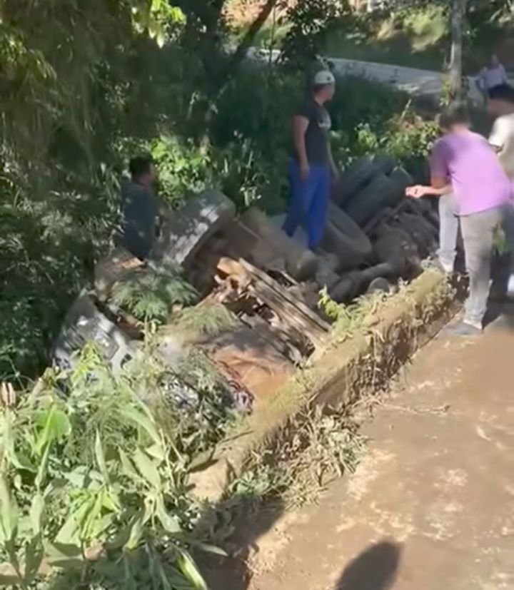 CAMINHÃO TOMBA NO BUEIRINHO EM RIO BRANCO DO SUL.