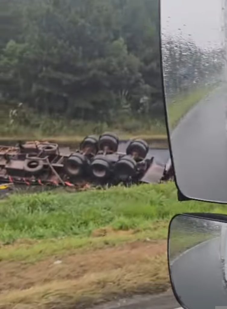 CARRETA TOMBA NA BR-116 E INTERDITA PISTA EM CAMPINA GRANDE DO SUL