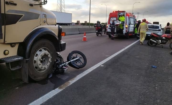 MOTOCICLISTA DE 22 ANOS É ATROPELADO POR CAMINHÃO APÓS QUEDA NO CONTORNO.